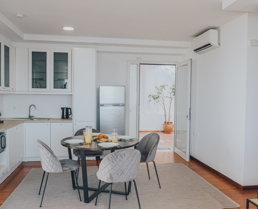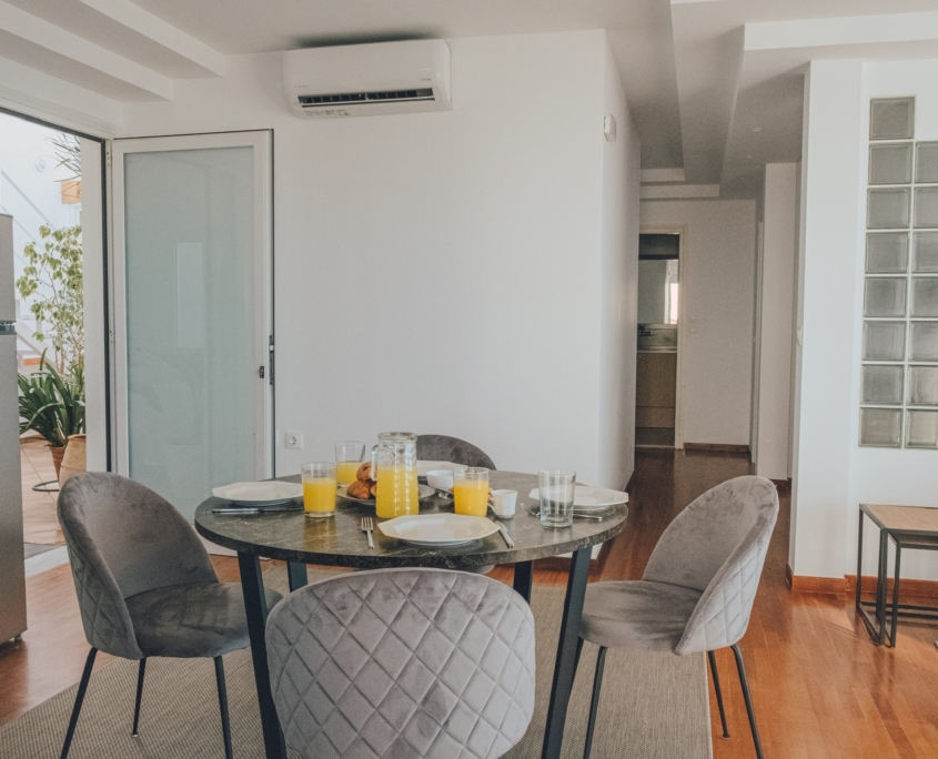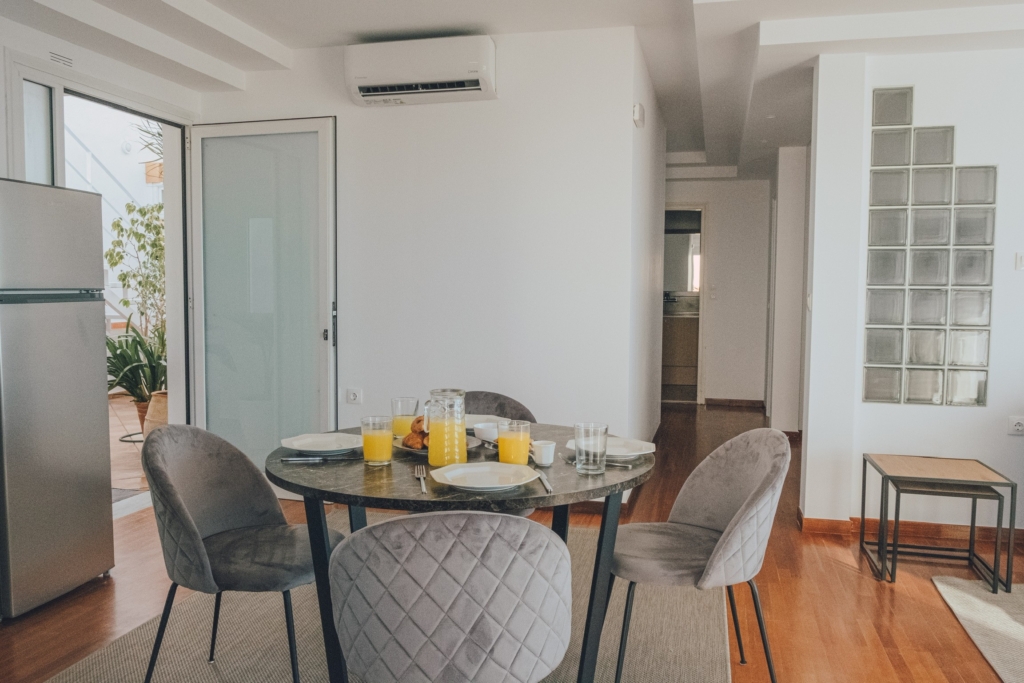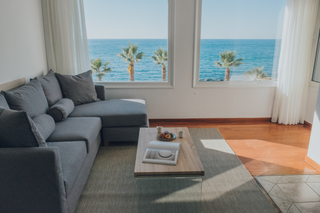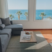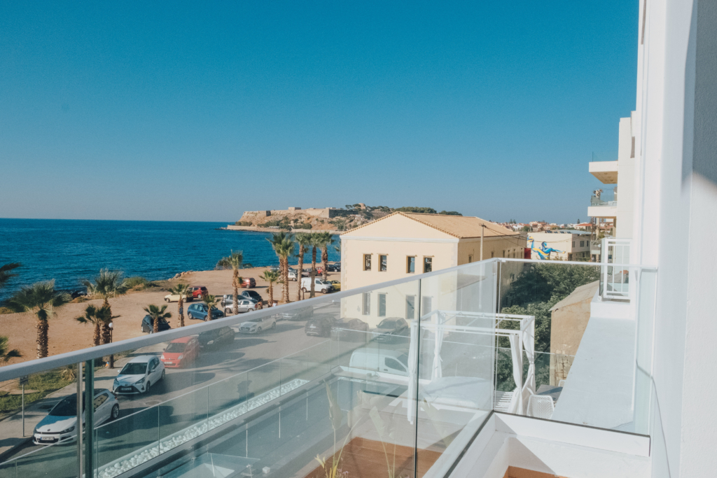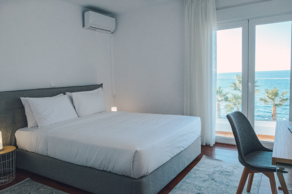 Our beautiful apartment has sea view from inside and also from its balconies. On the big balcony resides the jacuzzi where our guests can relax and enjoy the stunning sea view. Size of the apartment is 84m2. It has 2 bedrooms with a double bed each, a living room with an extra sofa bed, a kitchen and a beautiful bathroom.
