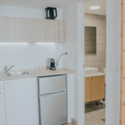The luxurious bed has room for up to two persons. One more person can sleep on the upper bed.